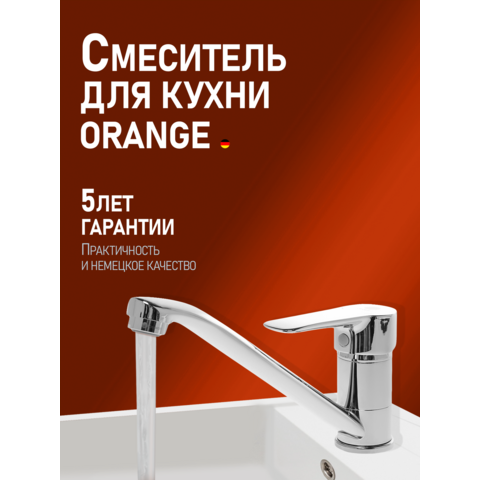 Однорычажный смеситель для кухни Orange Boni выполнен в прочном хромированном корпусе и оснащен низким поворотным изливом. В комплекте с агрегатом идёт гибкая подводка и крепежная система, которая позволяет монтировать кран на раковине. Модель, как и вся продукция Orange, изготовлена на базе передовых немецких инженерных разработок. При этом конструкция адаптирована к российским условиям эксплуатации, за счёт чего демонстрирует потрясающую работоспособность даже в агрессивных условиях, свойственных большинству регионов нашей страны. Поэтому если вы ищете надежный кран, который можно было бы установить на кухне, будучи уверенным в том, что он прослужит долгие годы, тогда обратите внимание на эту модель. Она удовлетворит вас и по эстетическим, и по техническим параметрам.