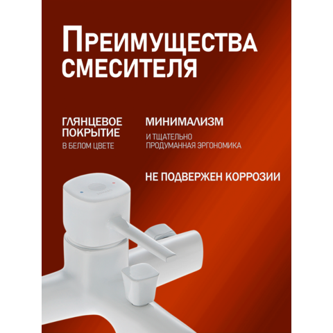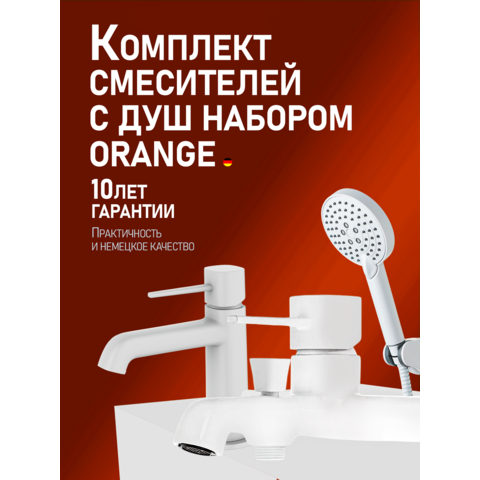 Набор смесителей для ванной комнаты Karl от немецкой компании Orange – отличный выбор для интерьера в стиле минимализм. Латунное изделие устойчиво к коррозии и высоким температурам, а белое глянцевое покрытие делает незаметными разводы и высохшие капли. Керамический картридж обеспечивает долговечность изделия, стабильную подачу воды и мощный напор. Излив оснащен пластиковым аэратором, он создает ровную мощную струю и легко очищается от известкового налета. В комплекте душевой набор: душевая лейка d 110 мм (3 режима струи, защита от известкового налета RUB CLEAN, с системой AIR IN), шланг в металлической оплетке 1500 мм с защитой от перекручивания, настенный держатель лейки с регулировкой угла наклона.