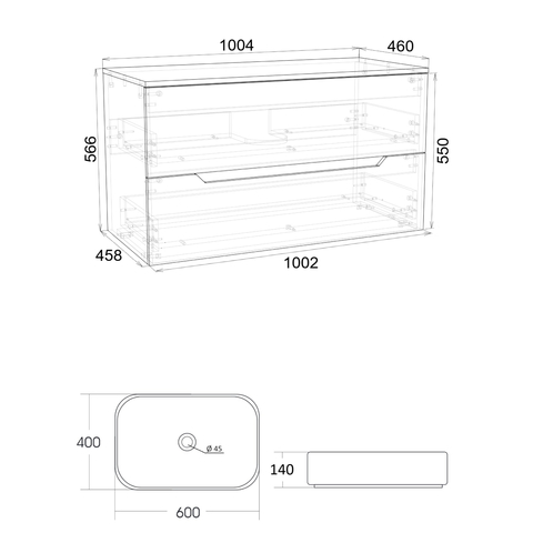 Тумба подвесная с накладной раковиной Orange Line отличается современным дизайном. Изготовлена из МДФ высокой плотности. Мебель покрыта пленкой ПВХ с технологией Soft Touch — ламинация класса премиум, с повышенными тактильными свойствами. Пленка обеспечивает дополнительную защиту мебели от влаги и перепадов температуры. На ящики установлены комплекты скрытых направляющих Hettich, обеспечивающие полное выдвижение и имеющие встроенную систему плавного и бесшумного закрывания. Исполнение - матовое. Материал раковины - фарфор. Отверстия в столешнице под раковину и смеситель монтируются самостоятельно.
