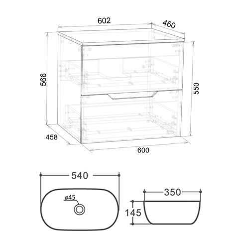 Тумба подвесная с накладной раковиной Orange Line отличается современным дизайном. Изготовлена из МДФ высокой плотности. Мебель покрыта пленкой ПВХ с технологией Soft Touch — ламинация класса премиум, с повышенными тактильными свойствами. Пленка обеспечивает дополнительную защиту мебели от влаги и перепадов температуры. На ящики установлены комплекты скрытых направляющих Hettich, обеспечивающие полное выдвижение и имеющие встроенную систему плавного и бесшумного закрывания. Исполнение - матовое. Материал раковины - фарфор. Отверстия в столешнице под раковину и смеситель монтируются самостоятельно.