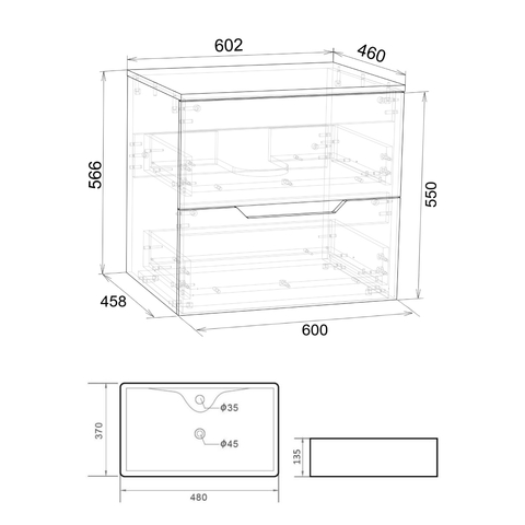 Тумба подвесная с накладной раковиной Orange Line отличается современным дизайном. Изготовлена из МДФ высокой плотности. Мебель покрыта пленкой ПВХ с технологией Soft Touch — ламинация класса премиум, с повышенными тактильными свойствами. Пленка обеспечивает дополнительную защиту мебели от влаги и перепадов температуры. На ящики установлены комплекты скрытых направляющих Hettich, обеспечивающие полное выдвижение и имеющие встроенную систему плавного и бесшумного закрывания. Исполнение - матовое. Материал раковины - фарфор. Отверстия в столешнице под раковину и смеситель монтируются самостоятельно.