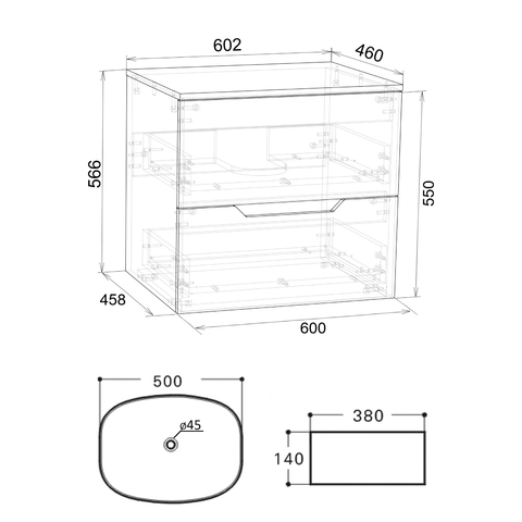 Тумба подвесная с накладной раковиной Orange Line отличается современным дизайном. Изготовлена из МДФ высокой плотности. Мебель покрыта пленкой ПВХ с технологией Soft Touch — ламинация класса премиум, с повышенными тактильными свойствами. Пленка обеспечивает дополнительную защиту мебели от влаги и перепадов температуры. На ящики установлены комплекты скрытых направляющих Hettich, обеспечивающие полное выдвижение и имеющие встроенную систему плавного и бесшумного закрывания. Исполнение - матовое. Материал раковины - фарфор. Отверстия в столешнице под раковину и смеситель монтируются самостоятельно.