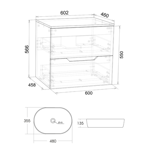 Тумба подвесная с накладной раковиной Orange Line отличается современным дизайном. Изготовлена из МДФ высокой плотности. Мебель покрыта пленкой ПВХ с технологией Soft Touch — ламинация класса премиум, с повышенными тактильными свойствами. Пленка обеспечивает дополнительную защиту мебели от влаги и перепадов температуры. На ящики установлены комплекты скрытых направляющих Hettich, обеспечивающие полное выдвижение и имеющие встроенную систему плавного и бесшумного закрывания. Исполнение - матовое. Материал раковины - фарфор. Отверстия в столешнице под раковину и смеситель монтируются самостоятельно.