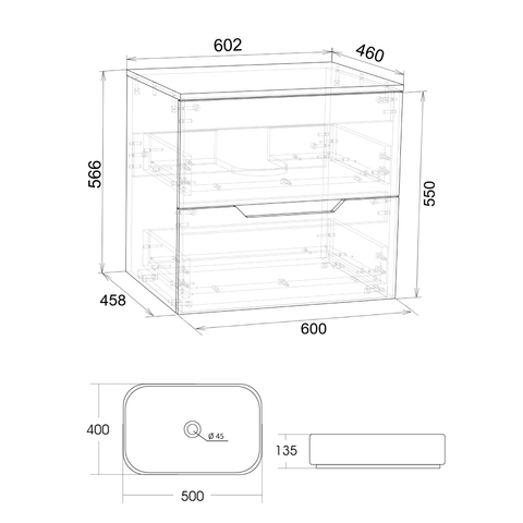 Тумба подвесная с накладной раковиной Orange Line отличается современным дизайном. Изготовлена из МДФ высокой плотности. Мебель покрыта пленкой ПВХ с технологией Soft Touch — ламинация класса премиум, с повышенными тактильными свойствами. Пленка обеспечивает дополнительную защиту мебели от влаги и перепадов температуры. На ящики установлены комплекты скрытых направляющих Hettich, обеспечивающие полное выдвижение и имеющие встроенную систему плавного и бесшумного закрывания. Исполнение - матовое. Материал раковины - фарфор. Отверстия в столешнице под раковину и смеситель монтируются самостоятельно.