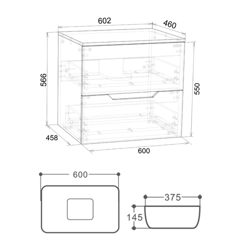 Orange Line Li-70TugMDF+B08-600W тумба с раковиной подвесная 70 см, графит/белый