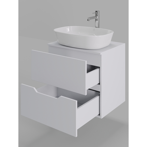 Тумба подвесная с накладной раковиной Orange Line отличается современным дизайном. Изготовлена из МДФ высокой плотности. Мебель покрыта пленкой ПВХ с технологией Soft Touch — ламинация класса премиум, с повышенными тактильными свойствами. Пленка обеспечивает дополнительную защиту мебели от влаги и перепадов температуры. На ящики установлены комплекты скрытых направляющих Hettich, обеспечивающие полное выдвижение и имеющие встроенную систему плавного и бесшумного закрывания. Исполнение - матовое. Материал раковины - фарфор. Отверстия в столешнице под раковину и смеситель монтируются самостоятельно.