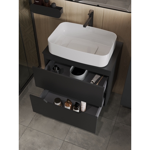 Тумба подвесная с накладной раковиной Orange Line отличается современным дизайном. Изготовлена из МДФ высокой плотности. Мебель покрыта пленкой ПВХ с технологией Soft Touch — ламинация класса премиум, с повышенными тактильными свойствами. Пленка обеспечивает дополнительную защиту мебели от влаги и перепадов температуры. На ящики установлены комплекты скрытых направляющих, обеспечивающие полное выдвижение и имеющие встроенную систему плавного и бесшумного закрывания. Исполнение - матовое. Материал раковины - фарфор. Отверстия в столешнице под раковину и смеситель монтируются самостоятельно. Донный клапан приобретается отдельно.