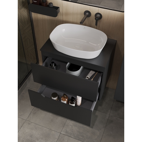 Тумба подвесная с накладной раковиной Orange Line отличается современным дизайном. Изготовлена из МДФ высокой плотности. Мебель покрыта пленкой ПВХ с технологией Soft Touch — ламинация класса премиум, с повышенными тактильными свойствами. Пленка обеспечивает дополнительную защиту мебели от влаги и перепадов температуры. На ящики установлены комплекты скрытых направляющих, обеспечивающие полное выдвижение и имеющие встроенную систему плавного и бесшумного закрывания. Исполнение - матовое. Материал раковины - фарфор. Отверстия в столешнице под раковину и смеситель монтируются самостоятельно. Донный клапан приобретается отдельно.