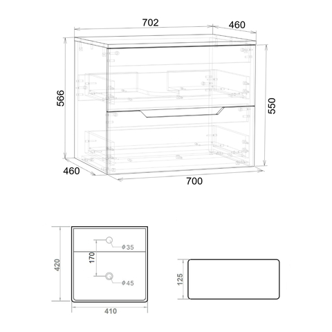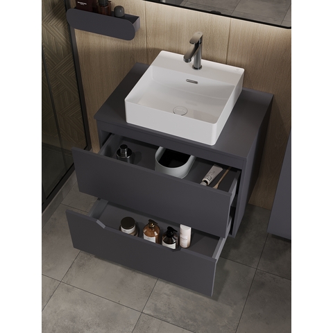 Тумба подвесная с накладной раковиной Orange Line отличается современным дизайном. Изготовлена из МДФ высокой плотности. Мебель покрыта пленкой ПВХ с технологией Soft Touch — ламинация класса премиум, с повышенными тактильными свойствами. Пленка обеспечивает дополнительную защиту мебели от влаги и перепадов температуры. На ящики установлены комплекты скрытых направляющих Hettich, обеспечивающие полное выдвижение и имеющие встроенную систему плавного и бесшумного закрывания. Исполнение - матовое. Материал раковины - фарфор. Отверстие в столешнице под раковину монтируется самостоятельно. Донный клапан приобретается отдельно.