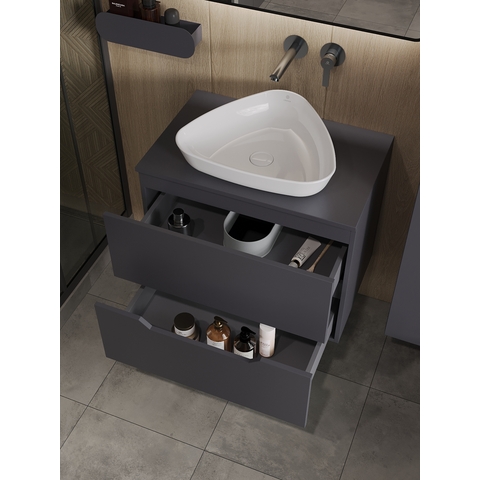 Тумба подвесная с накладной раковиной Orange Line отличается современным дизайном. Изготовлена из МДФ высокой плотности. Мебель покрыта пленкой ПВХ с технологией Soft Touch — ламинация класса премиум, с повышенными тактильными свойствами. Пленка обеспечивает дополнительную защиту мебели от влаги и перепадов температуры. На ящики установлены комплекты скрытых направляющих, обеспечивающие полное выдвижение и имеющие встроенную систему плавного и бесшумного закрывания. Исполнение - матовое. Материал раковины - фарфор. Отверстия в столешнице под раковину и смеситель монтируются самостоятельно. Донный клапан приобретается отдельно.