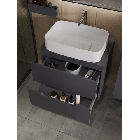 Тумба подвесная с накладной раковиной Orange Line отличается современным дизайном. Изготовлена из МДФ высокой плотности. Мебель покрыта пленкой ПВХ с технологией Soft Touch — ламинация класса премиум, с повышенными тактильными свойствами. Пленка обеспечивает дополнительную защиту мебели от влаги и перепадов температуры. На ящики установлены комплекты скрытых направляющих Hettich, обеспечивающие полное выдвижение и имеющие встроенную систему плавного и бесшумного закрывания. Исполнение - матовое. Материал раковины - фарфор. Отверстия в столешнице под раковину и смеситель монтируются самостоятельно. Донный клапан приобретается отдельно.