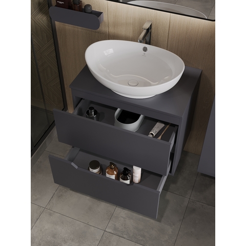 Тумба подвесная с накладной раковиной Orange Line отличается современным дизайном. Изготовлена из МДФ высокой плотности. Мебель покрыта пленкой ПВХ с технологией Soft Touch — ламинация класса премиум, с повышенными тактильными свойствами. Пленка обеспечивает дополнительную защиту мебели от влаги и перепадов температуры. На ящики установлены комплекты скрытых направляющих Hettich, обеспечивающие полное выдвижение и имеющие встроенную систему плавного и бесшумного закрывания. Исполнение - матовое. Материал раковины - фарфор. Отверстия в столешнице под раковину и смеситель монтируются самостоятельно. Донный клапан приобретается отдельно.