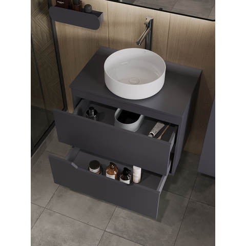 Тумба подвесная с накладной раковиной Orange Line отличается современным дизайном. Изготовлена из МДФ высокой плотности. Мебель покрыта пленкой ПВХ с технологией Soft Touch — ламинация класса премиум, с повышенными тактильными свойствами. Пленка обеспечивает дополнительную защиту мебели от влаги и перепадов температуры. На ящики установлены комплекты скрытых направляющих Hettich, обеспечивающие полное выдвижение и имеющие встроенную систему плавного и бесшумного закрывания. Исполнение - матовое. Материал раковины - фарфор. Отверстия в столешнице под раковину и смеситель монтируются самостоятельно. Донный клапан приобретается отдельно.