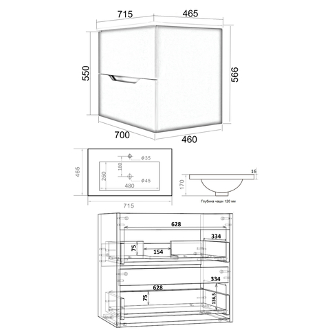 | Глубина, мм | 465 |