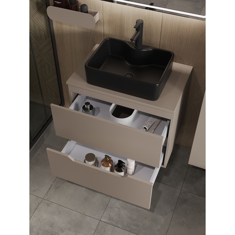 Тумба подвесная с накладной раковиной Orange Line отличается современным дизайном. Изготовлена из МДФ высокой плотности. Мебель покрыта пленкой ПВХ с технологией Soft Touch — ламинация класса премиум, с повышенными тактильными свойствами. Пленка обеспечивает дополнительную защиту мебели от влаги и перепадов температуры. На ящики установлены комплекты скрытых направляющих Hettich, обеспечивающие полное выдвижение и имеющие встроенную систему плавного и бесшумного закрывания. Исполнение - матовое. Материал раковины - фарфор. Отверстие в столешнице под раковину монтируется самостоятельно. Донный клапан приобретается отдельно.