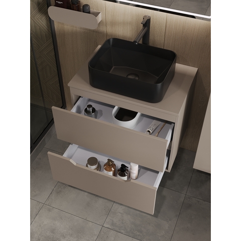 Тумба подвесная с накладной раковиной Orange Line отличается современным дизайном. Изготовлена из МДФ высокой плотности. Мебель покрыта пленкой ПВХ с технологией Soft Touch — ламинация класса премиум, с повышенными тактильными свойствами. Пленка обеспечивает дополнительную защиту мебели от влаги и перепадов температуры. На ящики установлены комплекты скрытых направляющих Hettich, обеспечивающие полное выдвижение и имеющие встроенную систему плавного и бесшумного закрывания. Исполнение - матовое. Материал раковины - фарфор. Отверстия в столешнице под раковину и смеситель монтируются самостоятельно. Донный клапан приобретается отдельно.