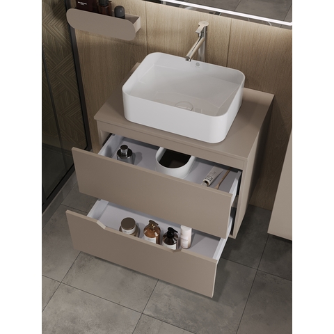 Тумба подвесная с накладной раковиной Orange Line отличается современным дизайном. Изготовлена из МДФ высокой плотности. Мебель покрыта пленкой ПВХ с технологией Soft Touch — ламинация класса премиум, с повышенными тактильными свойствами. Пленка обеспечивает дополнительную защиту мебели от влаги и перепадов температуры. На ящики установлены комплекты скрытых направляющих Hettich, обеспечивающие полное выдвижение и имеющие встроенную систему плавного и бесшумного закрывания. Исполнение - матовое. Материал раковины - фарфор. Отверстия в столешнице под раковину и смеситель монтируются самостоятельно. Донный клапан приобретается отдельно.