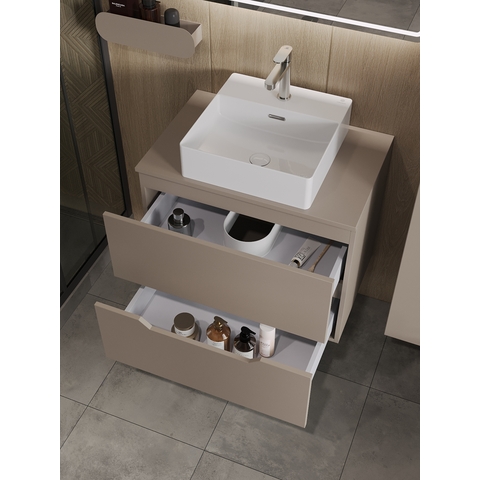 Тумба подвесная с накладной раковиной Orange Line отличается современным дизайном. Изготовлена из МДФ высокой плотности. Мебель покрыта пленкой ПВХ с технологией Soft Touch — ламинация класса премиум, с повышенными тактильными свойствами. Пленка обеспечивает дополнительную защиту мебели от влаги и перепадов температуры. На ящики установлены комплекты скрытых направляющих Hettich, обеспечивающие полное выдвижение и имеющие встроенную систему плавного и бесшумного закрывания. Исполнение - матовое. Материал раковины - фарфор. Отверстие в столешнице под раковину монтируется самостоятельно. Донный клапан приобретается отдельно.