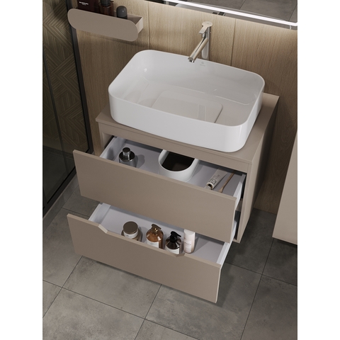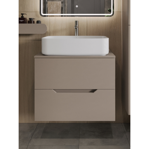 Тумба подвесная с накладной раковиной Orange Line отличается современным дизайном. Изготовлена из МДФ высокой плотности. Мебель покрыта пленкой ПВХ с технологией Soft Touch — ламинация класса премиум, с повышенными тактильными свойствами. Пленка обеспечивает дополнительную защиту мебели от влаги и перепадов температуры. На ящики установлены комплекты скрытых направляющих, обеспечивающие полное выдвижение и имеющие встроенную систему плавного и бесшумного закрывания. Исполнение - матовое. Материал раковины - фарфор. Отверстия в столешнице под раковину и смеситель монтируются самостоятельно. Донный клапан приобретается отдельно.