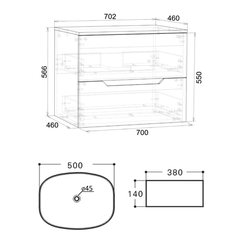 Тумба подвесная с накладной раковиной Orange Line отличается современным дизайном. Изготовлена из МДФ высокой плотности. Мебель покрыта пленкой ПВХ с технологией Soft Touch — ламинация класса премиум, с повышенными тактильными свойствами. Пленка обеспечивает дополнительную защиту мебели от влаги и перепадов температуры. На ящики установлены комплекты скрытых направляющих Hettich, обеспечивающие полное выдвижение и имеющие встроенную систему плавного и бесшумного закрывания. Исполнение - матовое. Материал раковины - фарфор. Отверстия в столешнице под раковину и смеситель монтируются самостоятельно. Донный клапан приобретается отдельно.