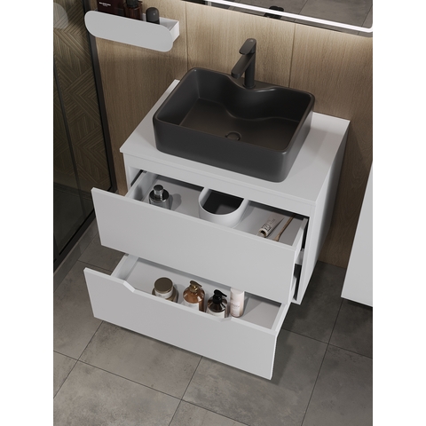 Тумба подвесная с накладной раковиной Orange Line отличается современным дизайном. Изготовлена из МДФ высокой плотности. Мебель покрыта пленкой ПВХ с технологией Soft Touch — ламинация класса премиум, с повышенными тактильными свойствами. Пленка обеспечивает дополнительную защиту мебели от влаги и перепадов температуры. На ящики установлены комплекты скрытых направляющих Hettich, обеспечивающие полное выдвижение и имеющие встроенную систему плавного и бесшумного закрывания. Исполнение - матовое. Материал раковины - фарфор. Отверстие в столешнице под раковину монтируется самостоятельно. Донный клапан приобретается отдельно.