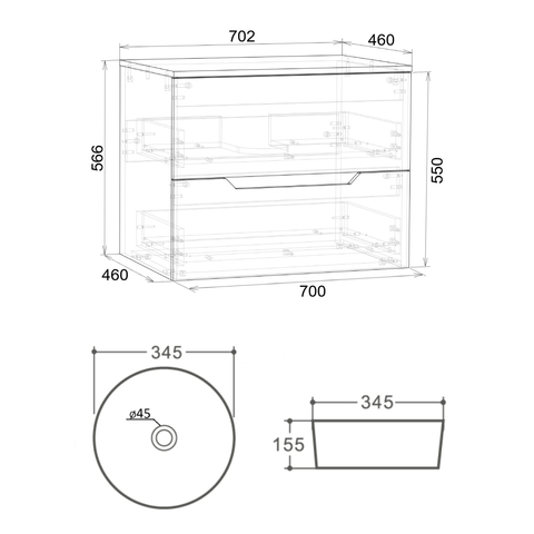 Orange Line Li-70TugMDF+B08-600W тумба с раковиной подвесная 70 см, графит/белый