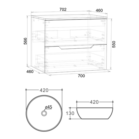 Тумба подвесная с накладной раковиной Orange Line отличается современным дизайном. Изготовлена из МДФ высокой плотности. Мебель покрыта пленкой ПВХ с технологией Soft Touch — ламинация класса премиум, с повышенными тактильными свойствами. Пленка обеспечивает дополнительную защиту мебели от влаги и перепадов температуры. На ящики установлены комплекты скрытых направляющих Hettich, обеспечивающие полное выдвижение и имеющие встроенную систему плавного и бесшумного закрывания. Исполнение - матовое. Материал раковины - фарфор. Отверстия в столешнице под раковину и смеситель монтируются самостоятельно. Донный клапан приобретается отдельно.
