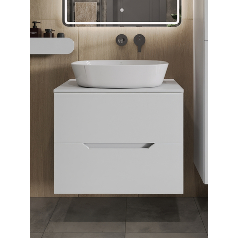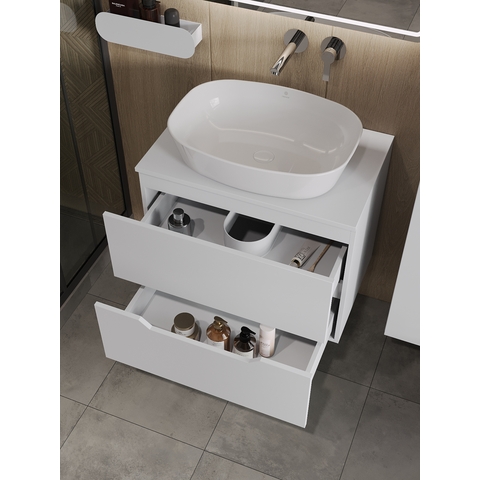 Тумба подвесная с накладной раковиной Orange Line отличается современным дизайном. Изготовлена из МДФ высокой плотности. Мебель покрыта пленкой ПВХ с технологией Soft Touch — ламинация класса премиум, с повышенными тактильными свойствами. Пленка обеспечивает дополнительную защиту мебели от влаги и перепадов температуры. На ящики установлены комплекты скрытых направляющих Hettich, обеспечивающие полное выдвижение и имеющие встроенную систему плавного и бесшумного закрывания. Исполнение - матовое. Материал раковины - фарфор. Отверстия в столешнице под раковину и смеситель монтируются самостоятельно. Донный клапан приобретается отдельно.
