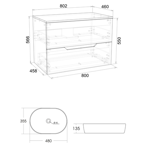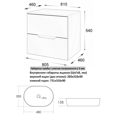 Тумба подвесная с накладной раковиной Orange Line отличается современным дизайном. Изготовлена из МДФ высокой плотности. Мебель покрыта пленкой ПВХ с технологией Soft Touch — ламинация класса премиум, с повышенными тактильными свойствами. Пленка обеспечивает дополнительную защиту мебели от влаги и перепадов температуры. На ящики установлены комплекты скрытых направляющих Hettich, обеспечивающие полное выдвижение и имеющие встроенную систему плавного и бесшумного закрывания. Исполнение - матовое. Материал раковины - фарфор. Отверстия в столешнице под раковину и смеситель монтируются самостоятельно.