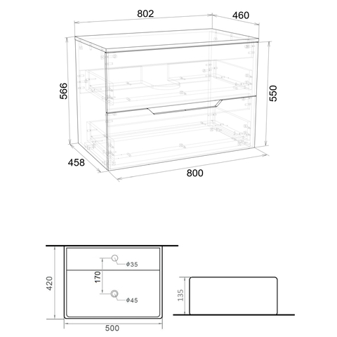 Тумба подвесная с накладной раковиной Orange Line отличается современным дизайном. Изготовлена из МДФ высокой плотности. Мебель покрыта пленкой ПВХ с технологией Soft Touch — ламинация класса премиум, с повышенными тактильными свойствами. Пленка обеспечивает дополнительную защиту мебели от влаги и перепадов температуры. На ящики установлены комплекты скрытых направляющих Hettich, обеспечивающие полное выдвижение и имеющие встроенную систему плавного и бесшумного закрывания. Исполнение - матовое. Материал раковины - фарфор. Отверстия в столешнице под раковину и смеситель монтируются самостоятельно.