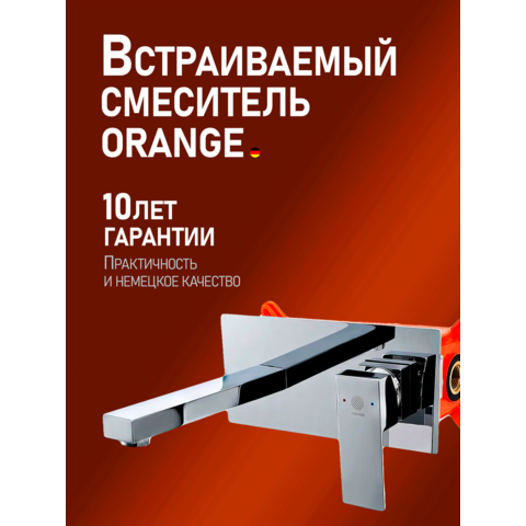 Однозахватный смеситель для раковины скрытого монтажа Orange Lutz заинтересует всех, кто ценит строгие, четкие линии и интерьеры в стиле минимализм. Выполнен из латуни, не подвержен коррозии от контакта с водой. Декоративная розетка аккуратно закроет монтажные отверстия. Легкое управление напором и температурой воды подарит фирменный картридж Orange. Хромированное покрытие, за которым очень просто ухаживать мягкой салфеткой, обеспечивает блеск на долгие годы. Аэратор экономит воду и, обогащая струю воздухом, делает её мягкой и без брызг. Внутренняя часть в комплекте.