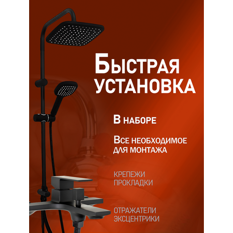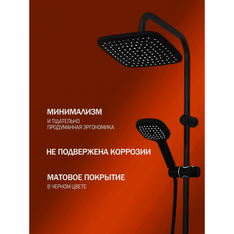 Душевая система Orange Lutz: однорычажный смеситель для ванны и душа идеально подойдет для обустройства современного интерьера в стиле модерн, покрытие цвета матовый черный, за которым просто ухаживать мягкой салфеткой, нанесено методом порошковой окраски, аэратор предотвращает разбрызгивание воды, делая струю мягкой; верхний душ 230х230 мм с регулировкой угла наклона, ручной душ 120 мм - 1 режим струи, регулируемый по высоте и наклону держатель ручного душа, форсунки верхнего и ручного душа с функцией легкой очистки от известкового налета, душевой шланг 1,5 м в металлической оплетке с защитой от перекручивания, штанга с возможностью установки в старые отверстия, керамический дивертор. Цвет матовый черный.