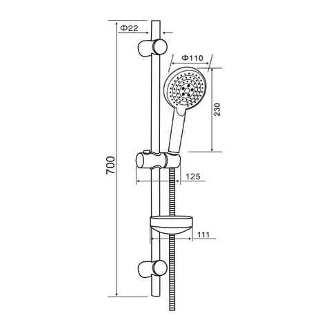 Orange O-Shower OS714b Душевой гарнитур, штанга 700 мм, лейка 1 режим, шланг 1,5 м, черный
