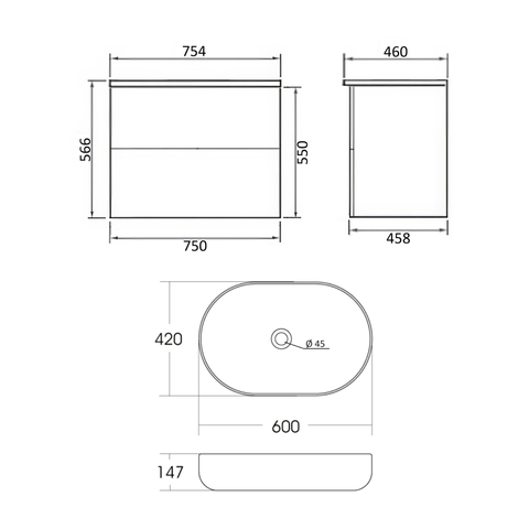 Orange Otto Ot-75TuMDF+B07-600W тумба с раковиной подвесная 75 см, белый глянец