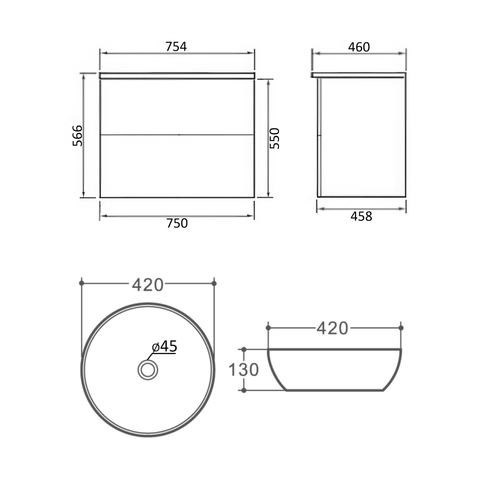 Orange Otto Ot-75TuMDF+B08-600W тумба с раковиной подвесная 75 см, белый глянец