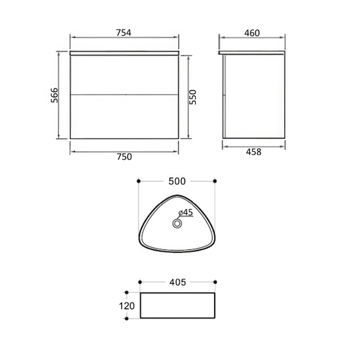Orange Otto Ot-75TuMDF+B07-600W тумба с раковиной подвесная 75 см, белый глянец
