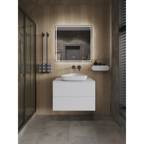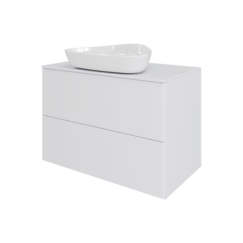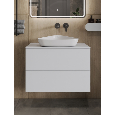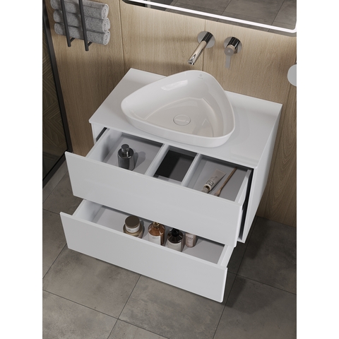 Подвесная тумба Orange Otto с раковиной-чашей и столешницей МДФ, с двумя выдвижными ящиками. Предназначена для использования в ванных комнатах с повышенной влажностью. Система Push to Open: ящики открываются нажатием на них. Высокое качество сборки, материалов и фурнитуры. Столешница, корпус и фасад: МДФ, плёнка ПВХ белая глянцевая. Раковина накладная - фарфор. Отверстия в столешнице под раковину и смеситель монтируются самостоятельно. Донный клапан приобретается отдельно.