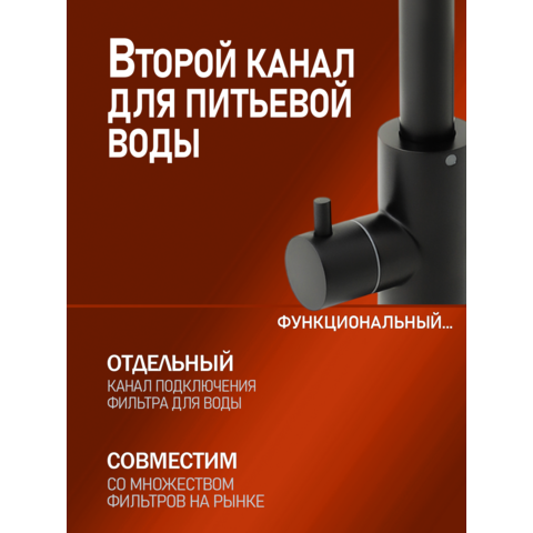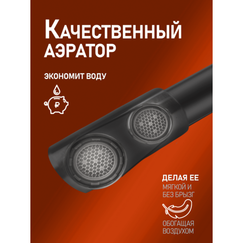 Однозахватный смеситель для кухни с поворотным изливом Orange Steel с возможностью подключения фильтра для воды – идеальное решение для тех, кто заботится о своем здоровье и здоровье близких. Благодаря фирменному картриджу Orange управление напором и температурой воды легкое и плавное. Корпус выполнен из нержавеющей стали, не подверженной коррозии от длительного контакта с водой. Износостойкое покрытие в цвете матовый черный нанесено методом порошковой окраски с многоступенчатой системой подготовки и температурной обработкой. Встроенный аэратор экономит воду и, обогащая струю воздухом, делает её мягкой и без брызг.