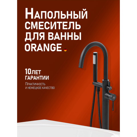 Однозахватный смеситель напольный для ванны с поворотным изливом и душевым набором Orange Steel украсит интерьер ванной комнаты с современном стиле. Такая модель будет особенно актуальна в новостройках, где часто вывод воды предусмотрен именно из пола. Корпус выполнен из высококачественной латуни, не подверженной коррозии от длительного контакта с водой. Износостойкое покрытие в цвете матовый черный, за которым просто ухаживать мягкой салфеткой, нанесено методом порошковой окраски с многоступенчатой системой подготовки и высокотемпературной обработкой. Фирменный керамический картридж Orange и эргономичный рычаг обеспечивают плавный уверенный ход без проскальзываний. Аэратор экономит воду и, обогащая струю воздухом, делает её мягкой и без брызг. Переключение между режимами душ/ванна осуществляется с помощью поворотного дивертора. В комплекте душевой набор: ручной душ (1 режим) с силиконовыми наконечниками (защита от известкового налета RUB CLEAN), душевой шланг 150 см в металлической оплетке, с защитой от перекручивания.